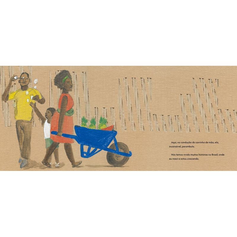 Uma história sobre a imigração haitiana contada a partir das memórias de uma mãe sob o olhar esperançoso de uma criança. “Minha mãe conta um mar de histórias sobre sua família no Haiti, país onde ela cresceu e nasceu.” É com essa frase que Wolff começa o livro, resgatando uma dessas histórias para falar com as infâncias sobre a imigração haitiana para o Brasil, motivada por desastres climáticos e más condições socioeconômicas. O terremoto traz a enchente que leva tudo. Depois, vêm a violência, a fome e a fuga. Por fim, surge uma nova vida em um país diferente, com outros desafios. Por meio de uma escrita poética que recupera com delicadeza as lembranças de uma crise, é contada uma narrativa da imigração haitiana. As ilustrações e os recortes feitos sobre papelão acrescentam profundidade ao retrato da fuga, complementando o texto e proporcionando novas possibilidades de leitura. Uma obra essencial para entender a importância da resistência e da preservação da memória. Azul Haiti é a estreia da autora Paty Wolff na Companhia das Letrinhas. Indicado para leitores a partir de 6 anos.