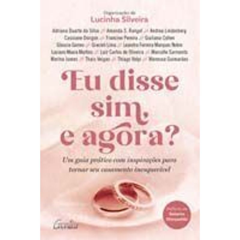 UM GUIA COMPLETO, INFORMATIVO, PRÁTICO E OBJETIVO PARA DAR CADA PASSO RUMO AO CASAMENTO DOS SONHOS COM CONFIANÇA E LEVEZA! Se você está organizando o seu casamento agora, peço que pare por um minuto e respire. Sabemos que esse período demanda muito mais tempo do que temos disponível, e que, mesmo em meio à felicidade, surgem sentimentos de ansiedade e dúvidas. Por isso, em Eu disse sim, e agora?, estão reunidos anos de experiência de dezessete profissionais de diferentes ramos que envolvem o universo dos casamentos. Todos compartilham aqui dicas práticas, alertas e tudo o que você precisa saber para que essa aventura seja como deve ser: recheada de felicidade, memórias e laços eternos. E, para isso, você aprenderá: Os cuidados que devem ser tomados durante todo o planejamento da festa; Quais são os principais passos a serem dados para tomar decisões com segurança e confiança; Dicas para curtir ao máximo cada momento ao lado do seu amor; E muitos conhecimentos importantes sobre assessoria de casamento, planejamento financeiro, escolha do celebrante, estética corporal, fotografia, docinhos, emagrecimento, embelezamento, controle das emoções, contratos com prestadores, cirurgia plástica, vestido de noiva, viagem de lua de mel, sexualidade, pele perfeita e construção do lar. Acredite em si, permita-se viver tudo aquilo que sempre sonhou. O seu casamento merece ser um momento inesquecível e você merece que a felicidade transborde em cada detalhe da sua história.