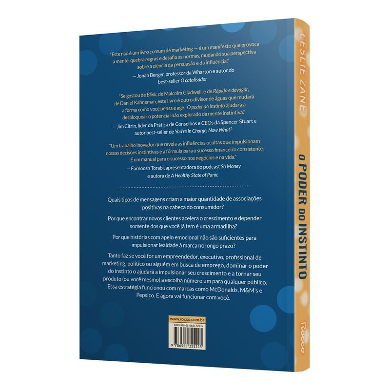 Quais tipos de mensagens criam a maior quantidade de associações positivas na cabeça do consumidor? Por que encontrar novos clientes acelera o crescimento e depender somente dos que você já tem é uma armadilha? Por que histórias com apelo emocional não são suficientes para impulsionar lealdade à marca no longo prazo? Tanto faz se você for um empreendedor, executivo, profissional de marketing, político ou alguém em busca de emprego, dominar o poder do instinto o ajudará a impulsionar seu crescimento e a tornar seu produto (ou você mesmo) a escolha número um para qualquer público. Essa estratégia funcionou com marcas como McDonalds, M&M’s e Pepsico. E agora vai funcionar com você. A consultora de marcas e especialista em comportamento Leslie Zane desafia a prática convencional do marketing ao afirmar que o instinto prevalece sobre a tomada de decisão consciente. Mas não é só isso: com o gatilho correto, é possível fazer as pessoas apoiarem sua empresa ou marca e até mesmo abraçarem sua visão de mundo. Pessoas não tomam decisões com a mente consciente, mas de maneira intuitiva. Em O poder do instinto, Zane revela que as táticas tradicionais de persuasão são insuficientes, afinal ninguém gosta de ser convencido. Em vez disso, é preciso ir fundo na mente do seu interlocutor. E, para isso, é essencial compreender a ciência das escolhas e aplicar técnicas que trabalhem em harmonia com o cérebro, e não contra ele. Capítulo a capítulo, com suas “lições do instinto”, o livro desvenda a rede oculta de conexões que determina as decisões rápidas que tomamos e revela como podemos influenciá-las. Com um conjunto revolucionário de regras para expandir essa rede, a autora mostra como transformar qualquer marca, negócio, candidato político ou ideia na escolha dominante. Guiando-se pelas histórias dos maiores sucessos globais, do McDonald’s a Taylor Swift, você aprenderá que tipo de mensagem cria o maior número de associações positivas; que depender apenas dos métodos tradicionais é uma armadilha; que é preciso mais do que histórias emocionais para gerar experimentação; e qual o valor da lealdade de longo prazo. “Este não é um livro comum de marketing — é um manifesto que provoca a mente, quebra regras e desafia as normas, mudando sua perspectiva sobre a ciência da persuasão e da influência.” — Jonah Berger, professor da Wharton e autor do best-seller O catalisador “Se gostou de Blink, de Malcolm Gladwell, e de Rápido e devagar, de Daniel Kahneman, este livro é outro divisor de águas que mudará a forma como você pensa e age. O poder do instinto ajudará a desbloquear o potencial não explorado da mente instintiva.” — Jim Citrin, líder da Prática de Conselhos e CEOs da Spencer Stuart e autor best-seller de You’re in Charge, Now What? “Um trabalho inovador que revela as influências ocultas que impulsionam nossas decisões instintivas e a fórmula para o sucesso financeiro consistente. É um manual para o sucesso nos negócios e na vida.” — Farnoosh Torabi, apresentadora do podcast So Money e autora de A Healthy State of Panic