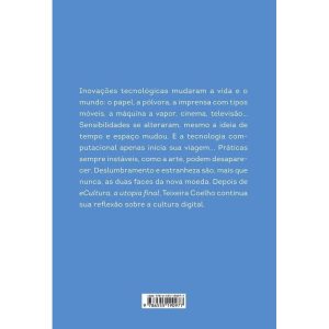 Inovações tecnológicas mudaram a vida e o mundo: o papel, a pólvora, a imprensa com tipos móveis, a máquina a vapor, cinema, televisão… Sensibilidades se alteraram, mesmo a ideia de tempo e espaço mudou. E a tecnologia computacional apenas inicia sua viagem… Práticas sempre instáveis, como a arte, podem desaparecer Deslumbramento e estranheza são, mais que nunca, as duas faces da nova moeda. Depois de eCultura, a utopia final, Teixeira Coelho continua sua reflexão sobre a cultura digital. Na Ucrânia projeta-se um Memorial em homenagem aos mais de 30 mil judeus mortos em dois dias de setembro de 1941 pelos invasores nazistas. À entrada do Memorial, os visitantes submetem-se a um teste do qual deriva o perfil de cada um traçado por algoritmo: carrasco, vítima, colaborador? Usando óculos de realidade virtual, o visitante fará um trajeto pela exposição conforme o perfil designado. A história como game? No Canadá, pesquisadores enfrentam o tratamento da esquizofrenia em pacientes refratários aos métodos tradicionais. O paciente descreve para um designer os demônios interiores que o atormentam; as imagens obtidas são acopladas a relatos do que ele diz ouvir dentro da cabeça. O confronto virtual com seus demônios pessoais. Numa tela digital, parece uma solução. A história pessoal como game? Na cultura eletrônica, é provável que a arte se transforme em outra coisa. Ou desapareça. Sobrevivendo, talvez não seja mais uma questão estética mas apenas social. Ou política. Ou decorativa. Pode vir a ser também, como Nietzsche previa ou desejava, uma “arte apenas para artistas”. A experiência humana com a tecnologia digital não mais é apenas ficção…