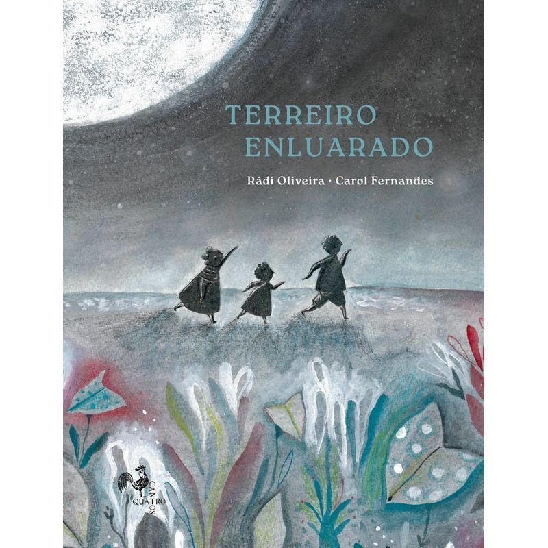 O terreiro é um quintal grande, um lá fora pra gente brincar. Isso se a mamãe deixar. Melhor quando tem lua que alguém pendurou lá no alto após tirar ela de dentro de um coco. Essa redonda mágica, ora cresce, ora mingua e, se você correr, ela corre, se você pular, ela pula, mas se você parar, ela para. Entre, então, nesta poesia escrita por Rádi, espalhada pelas pinturas de uma Carol enluarada. Heloisa Pires Lima