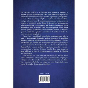 No encontro analítico – a dinâmica entre paciente e terapeuta – ocorrem grandes transformações. Neste livro, considerado um clássico contemporâneo, duas delas são abordadas: a transferência (que envolve as projeções, principalmente as de ordem emocional, dirigidas ao analista) e a contratransferência (que cria uma troca de sensações, percepções e sentimentos que surgem no terapeuta). Com ensaios de Murray Stein e do dr. Nathan Schwartz-Salant – que são também os organizadores da obra –, nove dos mais destacados analistas junguianos da atualidade discorrem sobre os complexos fenômenos que ocorrem nas mais variadas situações da psicoterapia. A obra evidencia os avanços obtidos a respeito desse tema desde que Jung publicou, há mais de cinquenta anos, seu clássico A Psicologia da Transferência.