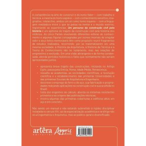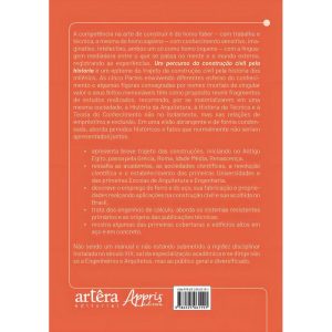 A competência na arte de construir é do homo faber — com trabalho e técnica, a mesma do homo sapiens — com conhecimento sensitivo, imaginativo, intelectivo, ambos um só como homo loquens — com a linguagem mediadora entre o que se passa na mente e o mundo externo, registrando as experiências. Um percurso da construção civil pela história é um epítome do trajeto da construção civil pela história dos milênios. As cinco Partes envolvendo diferentes esferas do conhecimento e algumas figuras consagradas por nomes imortais de singular valor e seus feitos memoráveis têm como propósito reunir fragmentos de estudos realizados, recorrendo, por se materializarem em uma mesma sociedade, à História da Arquitetura, à História da Técnica e à Teoria do Conhecimento não no isolamento, mas nas relações de empréstimo e exclusão. Em uma visão abrangente e de forma condensada, aborda períodos históricos e fatos que normalmente não seriam apresentados juntos. · apresenta breve trajeto das construções, iniciando no Antigo Egito, passa pela Grécia, Roma, Idade Média, Renascença. · ressalta as academias, as sociedades científicas, a revolução científica e o estabelecimento das primeiras Universidades e das primeiras Escolas de Arquitetura e Engenharia. · descreve o emprego do ferro e do aço, sua fabricação e propriedades realçando aplicações na construção civil e sua acolhida no Brasil. · trata dos engenhos de cálculo, aborda os sistemas resistentes primários e as origens das publicações técnicas. · mostra algumas das primeiras coberturas e edifícios altos em aço e em concreto. Não sendo um manual e não estando submetido à rigidez disciplinar instalada no século XIX, sai da especialização acadêmica e se dirige não só a Engenheiros e Arquitetos, mas ao público geral e diversificado.